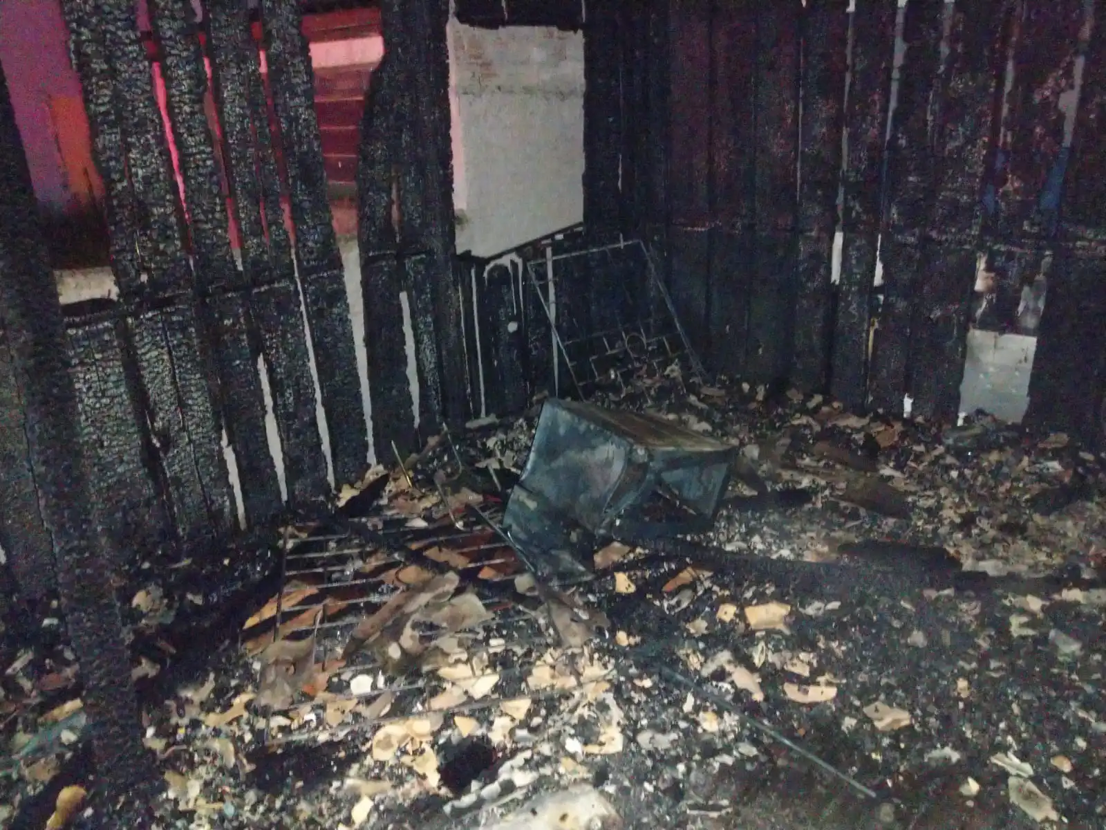 Um incêndio de grandes proporções atingiu uma residência unifamiliar de madeira na noite deste domingo (28), por volta das 22h48, na Rua Vitor Hugo, bairro