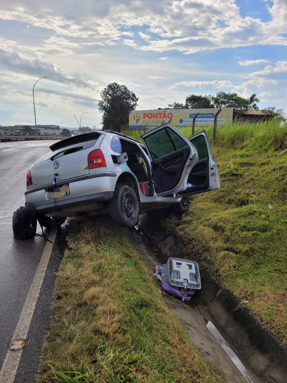 Uma saída de pista na marginal da BR-101, no bairro Esplanada, em Morro da Fumaça, mobilizou a equipe do Corpo de Bombeiros Militar no fim