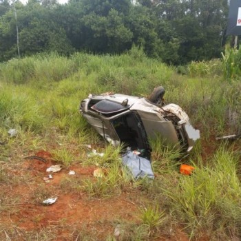 O fato foi registrado neste domingo (5), por volta das 16h43; uma mulher também ficou ferida Um acidente de trânsito, envolvendo o capotamento de um