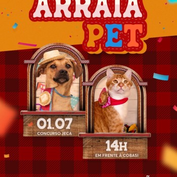 Evento será no próximo sábado, 01, com início às 14h, em frente à loja Cobasi Iti malia sô, o Arraiá Pet do Nações Shopping está