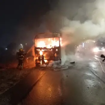 Caminhão é destruído por incêndio no bairro Presidente Vargas