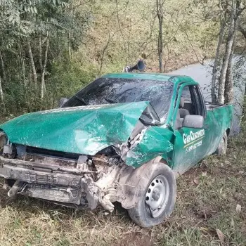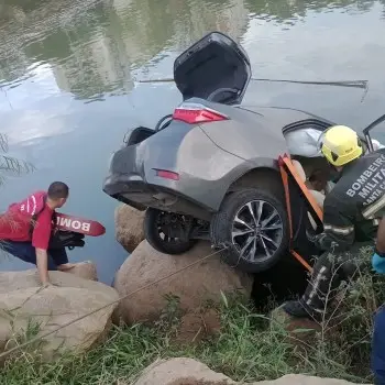 O motorista de um Toyota Corola, foi resgatado pelo Corpo de Bombeiros, após perder o controle da direção, sair da pista e cair no Rio