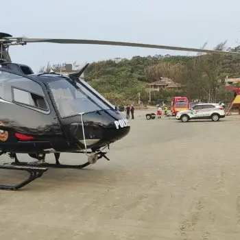 A aeronave da Polícia Civil, tripulada pelos policiais do SAER e pelos profissionais da saúde do Aeromédico SAMU, foi acionada pelo Corpo de Bombeiros para