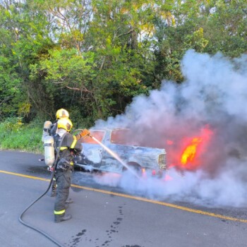 Incêndio em um veículo VW Saveiro foi registrado nesta domingo, na Rua Mil Setecentos e Quarenta e Oito, no bairro Jardim Maristela, em Criciúma. O condutor,