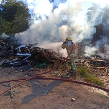 Neste domingo, os bombeiros voluntários de Jaguaruna foram acionados para combater um incêndio nas margens da BR-101, no km 360, Morro Grande, em Sangão. Ao
