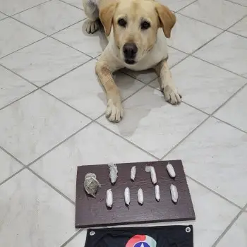 A Policia Militar em patrulhamento no bairro Tereza Cristina, nas imediações da linha férrea, fez uma ronda a pé no local e utilizando o cão
