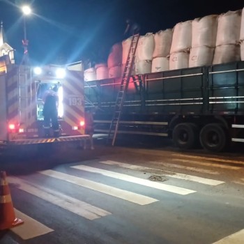 A guarnição dos bombeiros de Turvo foi acionada na noite de ontem para atender um incêndio em veículo de carga (caminhão), na Rodovia SC-285, no