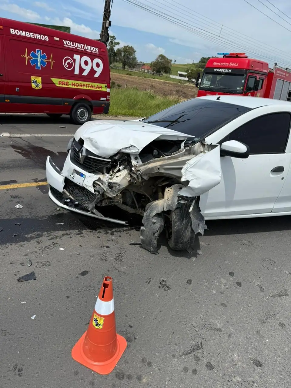 Um acidente de trânsito foi registrado neste sábado (15), na SC-100 Claudino Abel Botega, no bairro Morro Bonito, em Jaguaruna. A colisão envolvendo dois veículos