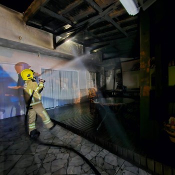 Na madrugada deste domingo, os bombeiros voluntários de Jaguaruna foram acionados para atender uma ocorrência de incêndio em residência no bairro Campo Bom. Chegando no