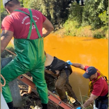 A guarnição foi acionada pela Central de Emergências (COBOM), na tarde de hoje, para realizar o resgate de um homem de 49 anos, dentro do