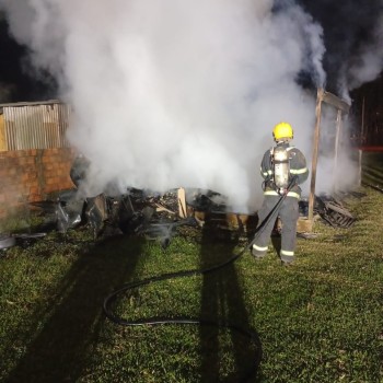 Na noite de terça-feira (12), por volta das 23h26, uma casa de madeira foi completamente destruída por um incêndio na Rua Três Marias, no bairro