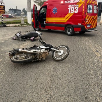 Na manhã desta sexta-feira (29), duas pessoas ficaram feridas após um acidente envolvendo duas motocicletas na Avenida Celeste Recco, no bairro Jussara, em Morro