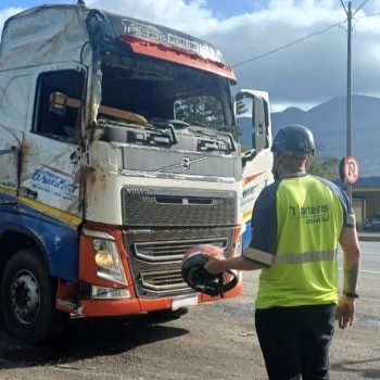 Policiais rodoviários federais, com apoio da concessionária Arteris, flagraram na tarde desta quinta-feira (18), na BR-101 em Joinville, uma carreta sendo conduzida por um homem