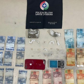 Na noite deste domingo (21), por volta das 20h40, a Polícia Militar apreendeu um adolescente de 17 anos por tráfico de drogas no bairro Jardim