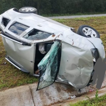Da Redação Na manhã desta quinta-feira (25), por volta das 7h30, um carro capotou no canteiro central da Rodovia Aristides Bolan (Via Rápida), no