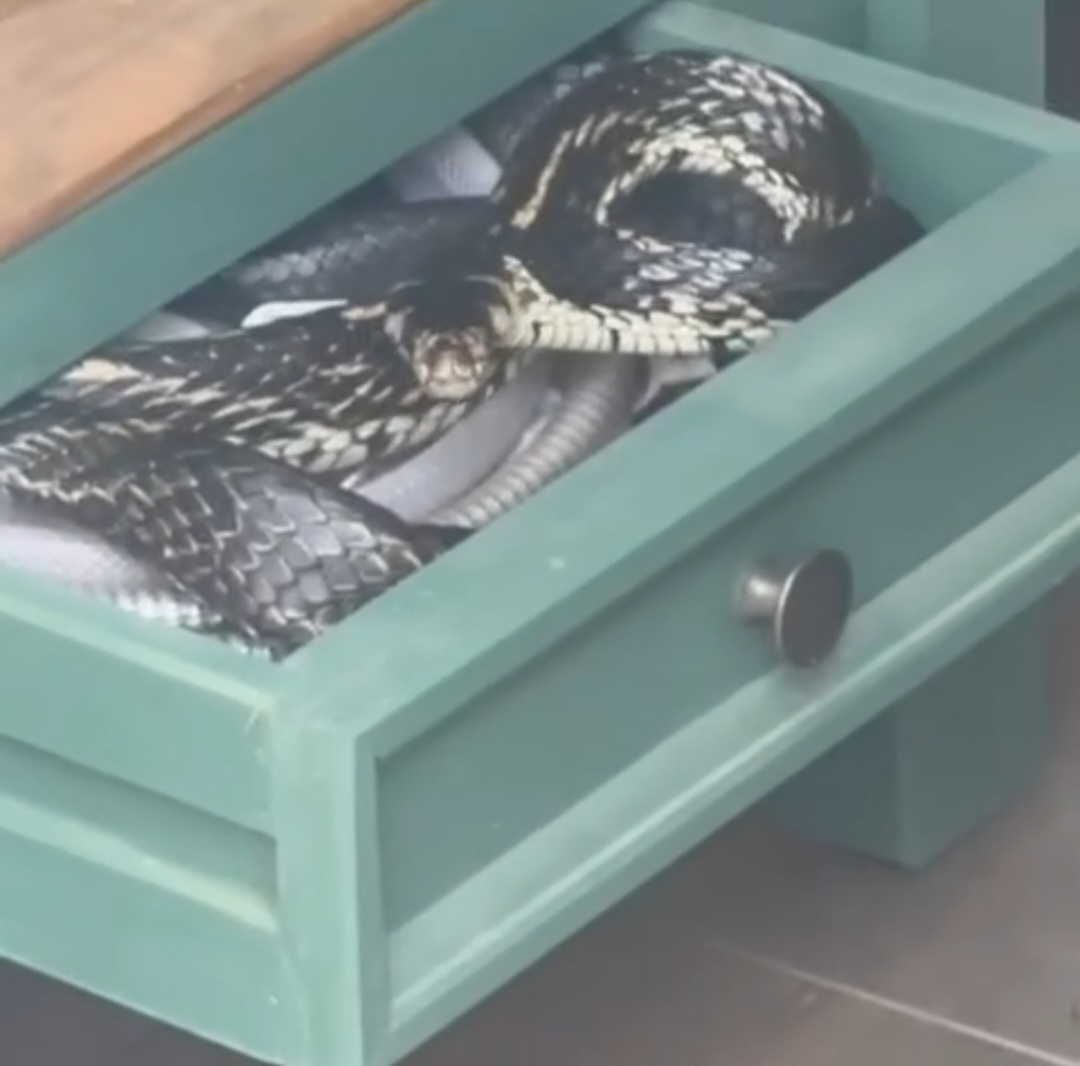 Uma família teve uma surpresa inesperada na manhã desta segunda-feira (9) ao encontrar uma cobra dentro de casa, na localidade de Vila São Jorge, em