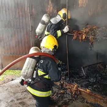 Um incêndio atingiu uma estufa de fumo nesta sexta-feira (31), em São João do Sul. O Corpo de Bombeiros de Passo de Torres foi acionado