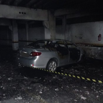 Um incêndio atingiu a garagem de uma edificação comercial localizada na Rua Angélica Collodel Bettiol, no Centro de Urussanga, no início da noite deste sábado