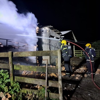 Um incêndio em uma estufa de fumo mobilizou o Corpo de Bombeiros Militar na madrugada deste domingo (16), na Estrada Geral Garuva, bairro Garuva, em