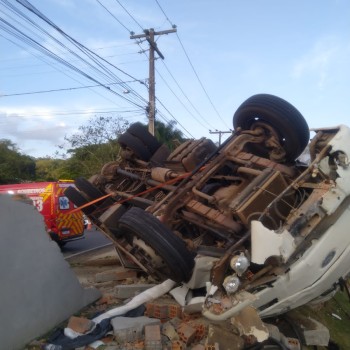Um caminhão Ford Cargo carregado com bananas tombou na tarde desta sexta-feira (21) na Rua Manoel João Machado, no Bairro Colonial, em Criciúma. O acidente,