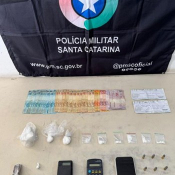 A Polícia Militar prendeu um homem por tráfico de drogas e posse de munições de uso restrito durante uma abordagem no bairro Januária, em Sombrio.