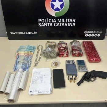 A Polícia Militar de Santa Catarina atendeu, na tarde de sábado (20), uma ocorrência envolvendo os crimes de tráfico de drogas e posse de arma