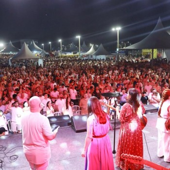 Uma multidão se reuniu na Praça Central de Eventos do Balneário Rincão para encerrar o ano e dar as boas-vindas a 2026 em um clima