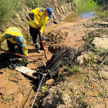 O Corpo de Bombeiros foi acionado nesta terça-feira (27) para o resgate de um animal em situação de perigo no bairro Esplanada, em Içara. A