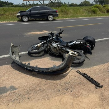 Um acidente de trânsito envolvendo um carro e uma motocicleta foi registrado na manhã desta quinta-feira (29/01), na rodovia SC-100 Claudino Abel Botega, no bairro