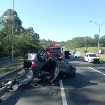 Um capotamento mobilizou equipes de resgate na manhã desta quarta-feira (11) na Rodovia Deputado Aristides Bolan, no bairro São João, em Criciúma. O acidente envolveu