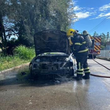 Carro pega fogo no bairro Verdinho e mobiliza bombeiros em Criciúma