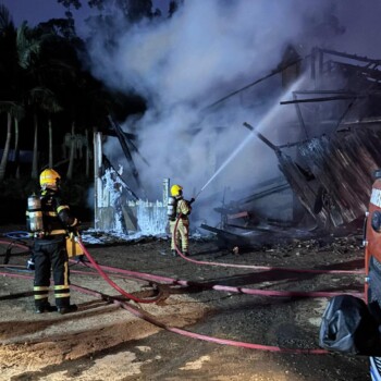 Um incêndio de grandes proporções destruiu uma estufa de secagem de milho neste sábado (18), na localidade de Rio Capivaras Alto, em Lauro Müller. De