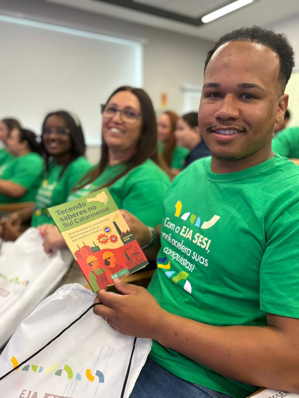 “O lançamento do livro dos estudantes da EJA celebrou histórias de superação e transformação pela educação. As páginas escritas refletem a coragem de quem concilia trabalho e estudo e continua sonhando. A autoria representa não só produção literária, mas também a construção da própria trajetória, impulsionada pelo apoio da equipe da EJA do SESI e pelo contexto da indústria catarinense”, aponta a coordenadora de Educação Básica do SESI Criciúma, Gabrieli Borges Ugioni Felipe.