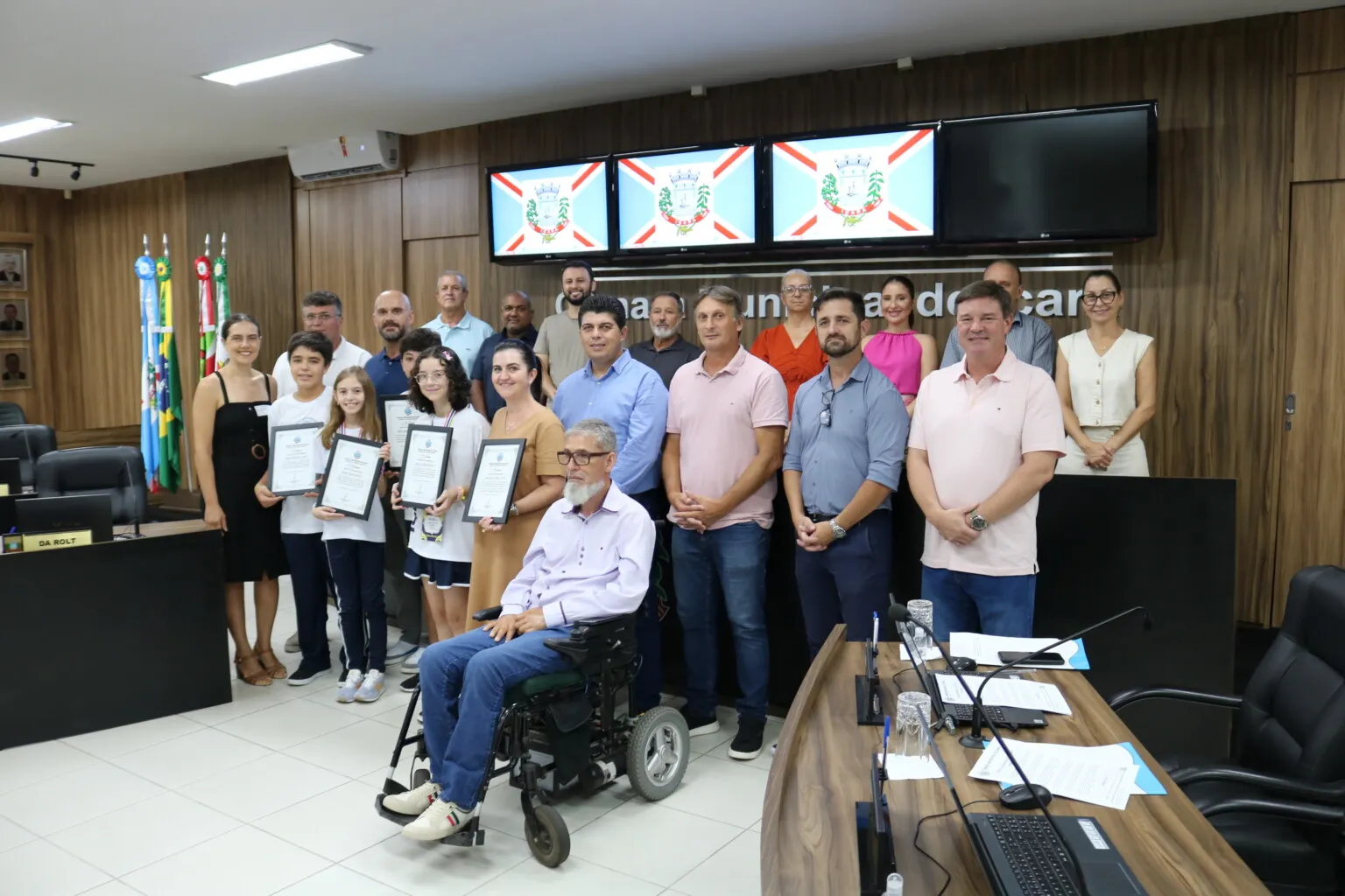 Foram entregues nesta segunda-feira (16), moções de congratulações aos alunos da escola municipal Maria Arlete Bitencourt Lodetti, pelos resultados na International Talent Mathematics Contest (ITMC) 2026, realizado em Bangkok, na Tailândia. O município de Içara estava sendo representado pelos alunos do sexto ano, onde três conquistaram medalhas de bronze e um deles recebeu menção honrosa. Sendo os medalhistas Henry Gomes Bardini Martins, Lorena Neuhaus da Silva e Isabela de Almeida Martinho. Com a menção honrosa Gustavo Marcolino Lodetti.