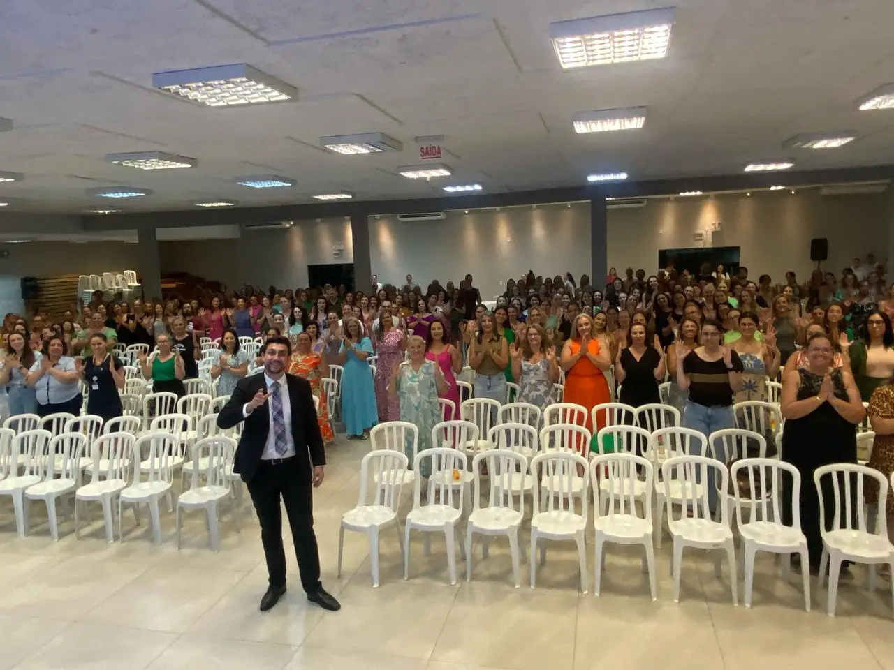 Começou mais um ano letivo para os professores da rede municipal de ensino de Içara. Na noite desta quarta-feira, dia 7, aconteceu o evento de abertura no Salão Paroquial da Matriz São Donato. Mais de 500 docentes se reuniram para colocar a conversa em dia após o período de férias e acompanhar uma apresentação do palestrante motivacional Jardel Beck.