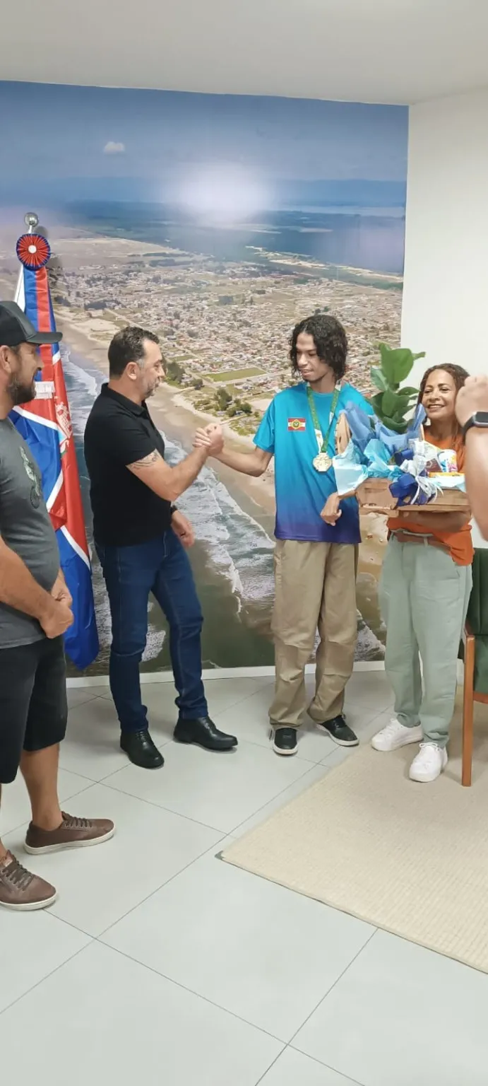 O reconhecimento ao talento e à superação continua! Após ser homenageado nos 30 anos de Balneário Gaivota, dia 29/12, o campeão estadual e nacional das Olimpíadas das APAEs, Paulo John Honorato (o Paulinho), foi recebido na manhã desta sexta-feira (09/01) pelo Prefeito Everaldo dos Santos, o Kekinha.