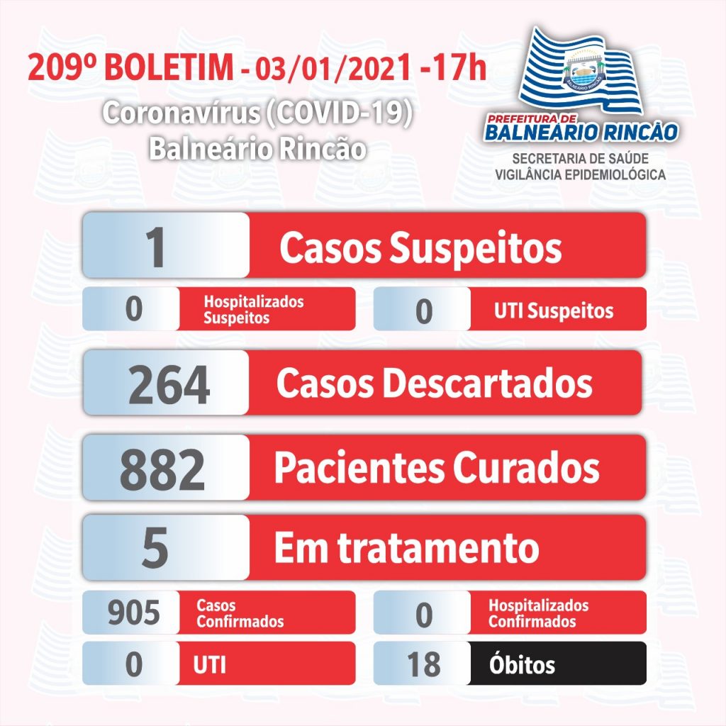 O município de Balneário Rincão registrou no último sábado (3), a 18ª morte por coranavírus. Trata-se de um homem, de 72 anos, internado na UTI desde o dia 6 de dezembro e apresentava outras comorbidades.