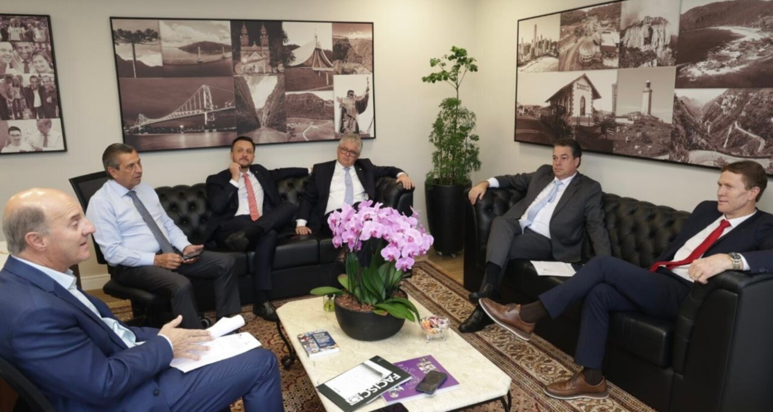 A Bancada do Sul na Alesc reuniu-se na manhã desta quarta-feira, dia 15, para tratar da limpeza e do desassoreamento do Rio Urussanga, do risco de fechamento de empresas devido ao alto custo do gás natural e da situação do Complexo Lagunar. O encontro foi conduzido pelo coordenador da bancada, deputado estadual Rodrigo Minotto (PDT), e contou com a presença do presidente da Alesc, deputado Julio Garcia (PSD), além dos deputados Zé Milton Scheffer (PP), Pepê Collaço (PP), Tiago Zilli (MDB) e Volnei Weber (MDB).