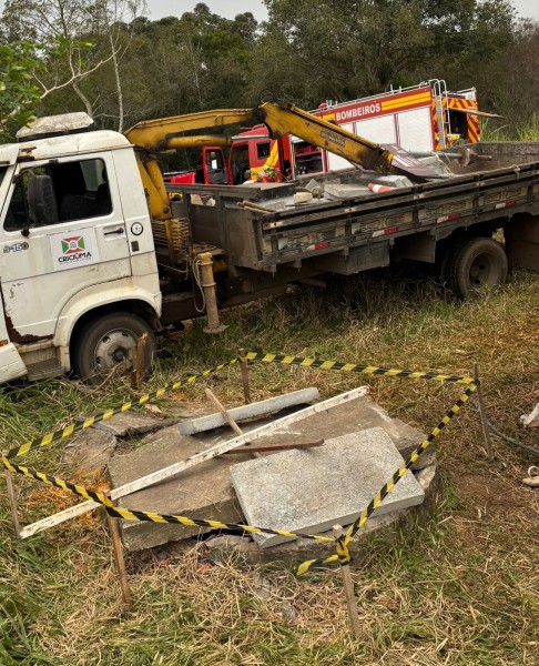 Ao final, o poço foi tampado com lajes de concreto e isolado com fita zebrada para evitar novos acidentes.