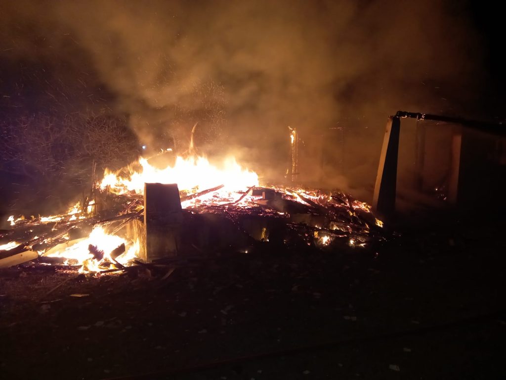 Uma residência de aproximadamente 60 m² localizada na Rodovia Jorge Fortulino, na Lagoa dos Esteves, em Balneário Rincão, foi consumida pelo fogo, na noite desta sexta-feira (08).