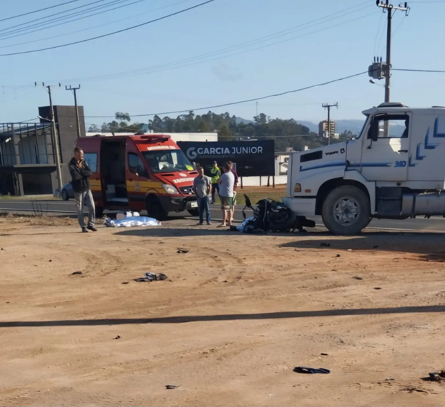 O motorista da carreta Volvo, um homem de 55 anis, não estava na cena, tendo chegado posteriormente e se apresentado. Não foi possível coletar a identidade das vítimas. A guarnição permaneceu na cena até a chegada da polícia rodoviária estadual, que assumiu a ocorrência.