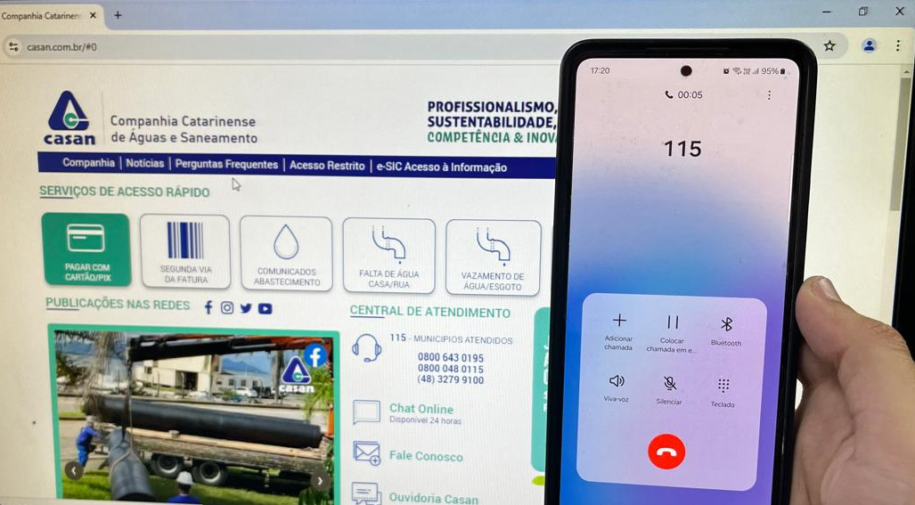 Dentro e fora do Estado, sem sair de casa ou na palma da mão, seja por texto ou voz, é possível encaminhar sua demanda ou solicitar informações, escolhendo a opção de: fazer uma ligação pelos números 115 ou 0800-643-0195; acessar os serviços online pelo site oficial: www.casan.com.br/canais-atendimento; ou ainda, baixar o aplicativo App CASAN SC disponível gratuitamente para Android e iOS.