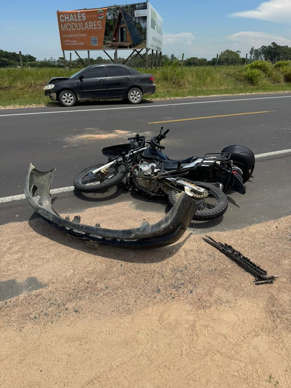Um acidente de trânsito envolvendo um carro e uma motocicleta foi registrado na manhã desta quinta-feira (29/01), na rodovia SC-100 Claudino Abel Botega, no bairro