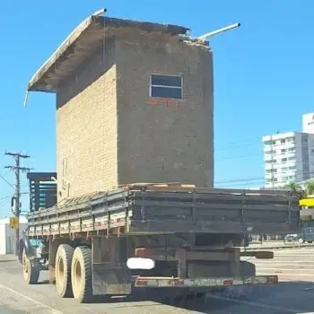 Um caminhão levando um banheiro de alvenaria na carga foi flagrado na marginal da BR-101 em Tubarão, na tarde de terça-feira (13). A Polícia Militar