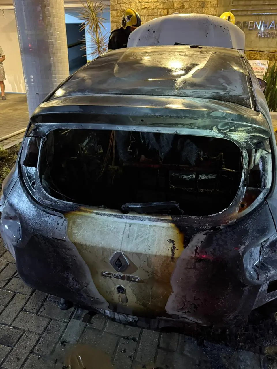 Um incêndio em veículo mobilizou o Corpo de Bombeiros na madrugada deste sábado (21), por volta das 4h10, na Rua Martinho Acácio Gomes, no Centro