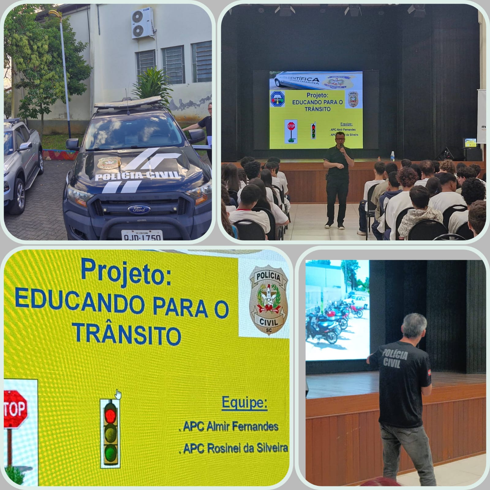 Nesta quinta-feira, dia 9, o delegado da polícia civil, André Milanese, priferiu palestra voltada à educação no trânsito para mais de 200 alunos do Bairro