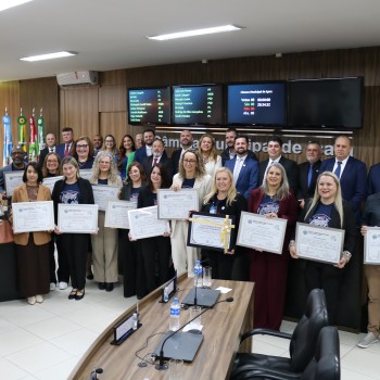 A noite de quinta-feira (17) foi de homenagens na Câmara Municipal de Içara. Os 40 anos da Escola Municipal de Ensino Fundamental Tranquillo Pissetti, instalada
