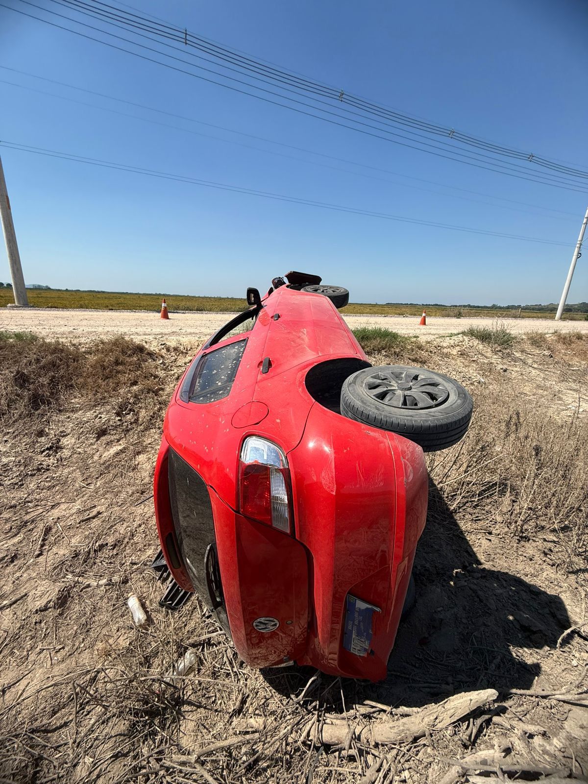 Na tarde deste sábado (04/04), a equipe do Corpo de Bombeiros Voluntários foi acionada para atender uma ocorrência de saída de pista seguida de capotamento