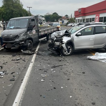 Um acidente de trânsito grave deixou um homem morto e uma mulher ferida na tarde desta segunda-feira (8) na Rodovia Maximiliano Gaidzinski, no Centro de