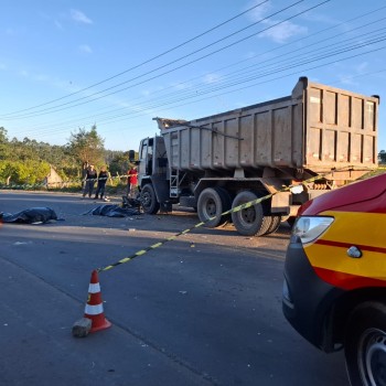 Na tarde deste domingo, um acidente de trânsito envolvendo um caminhão e uma moto, resultou na morte de uma mulher de 48 anos e de